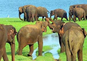 In the afternoon Take a jeep safari through the Kaudulla National Park , looking for elephants, deer, peacocks, boars, and many kinds of birds. Overnight at Sigiriya.